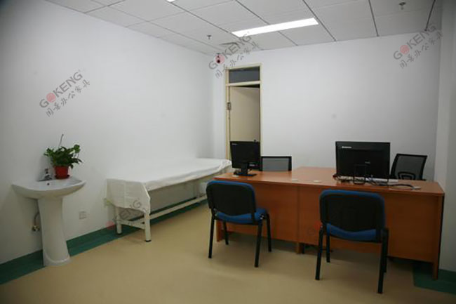 上图为广西北海市合浦县人民医院就诊室,就诊台为双人办公桌,配备两人办公工位。再配上一张简易的床,一个简单的就诊室就这么完成了。