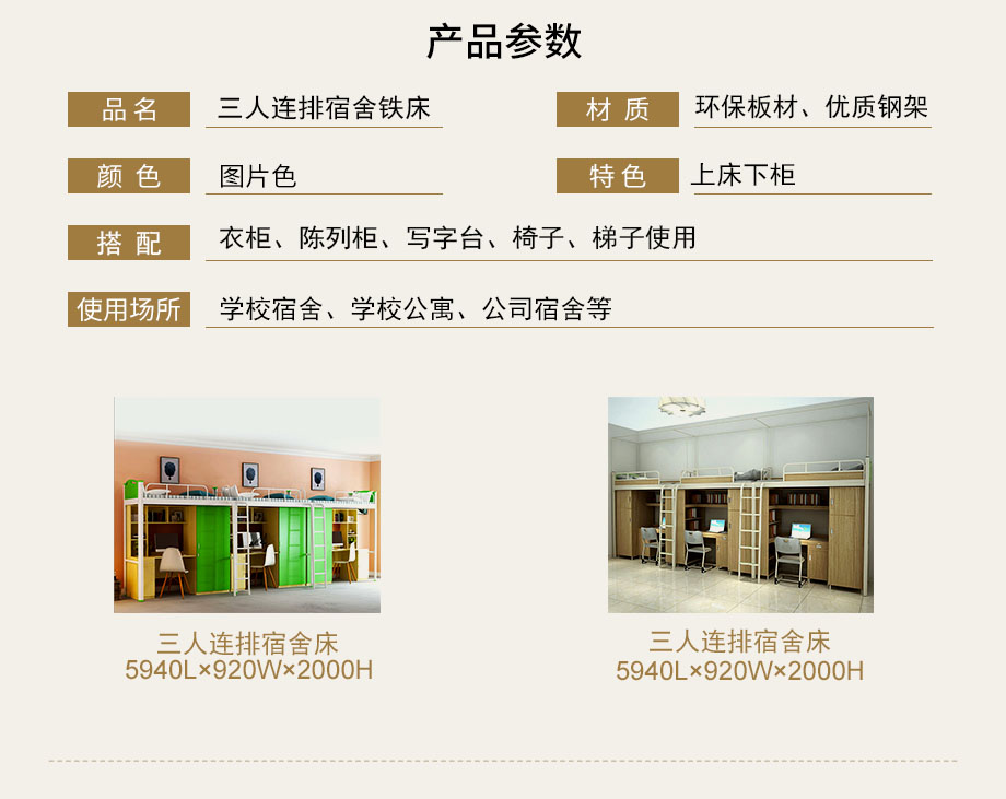 咨询:三人连排宿舍铁床
